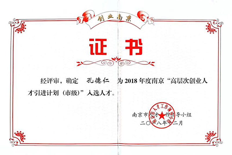 2018年法人获得《高层次创业人才引进计划》